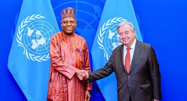 Vice President Kashim Shettima has met with the United Nations Secretary-General António Guterres in New York to discuss Nigeria’s global aspirations during the ongoing UNGA80.