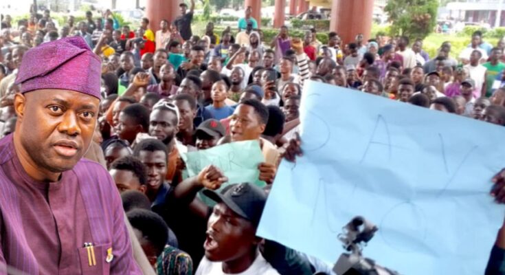 The displeased student carried placards with different inscriptions, asking Governor Seyi Makinde to rescind his decision and restore the polytechnic to its original name.