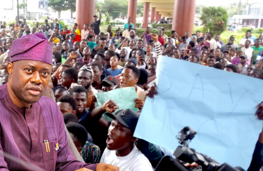 Students of The Polytechnic Ibadan, on Tuesday, staged a protest at the Oyo State Government Secretariat against the renaming of the institution after a former governor of the state, Omololu Olunloyo.